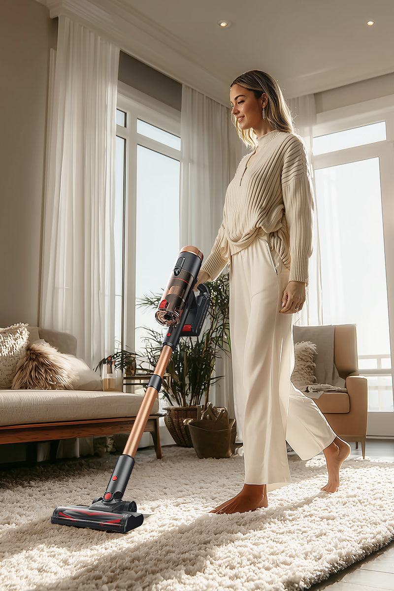 This cordless vacuum cleaner is particularly powerful, adapts flexibly to different floors and surfaces.
