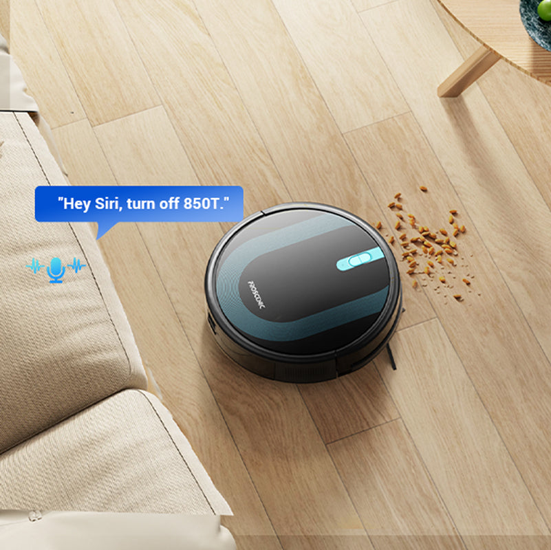 Control the 850T robot vacuum by using your voice via Siri, Amazon Alexa or Google Home.