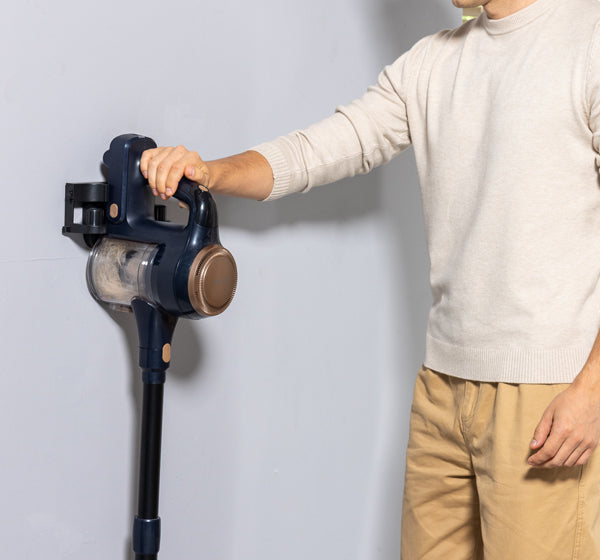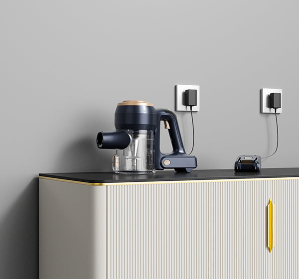 There are three ways to charge: mount the vacuum on the wall for neat storage and charging, charge the main body with the battery inside, or remove and charge the battery separately.