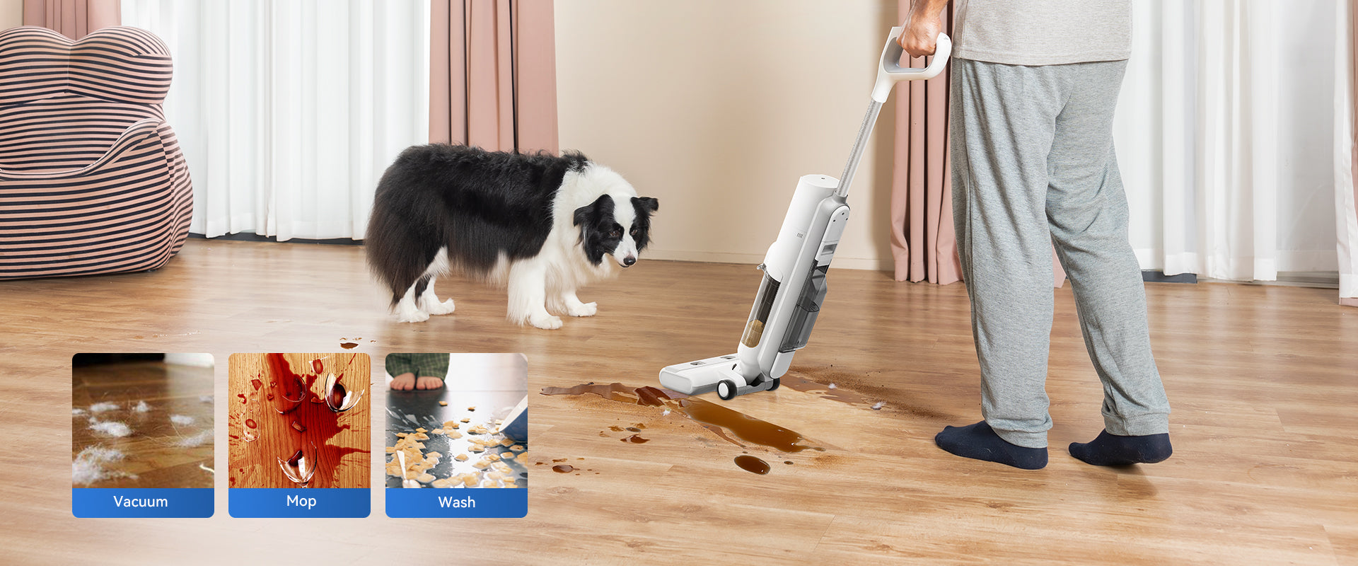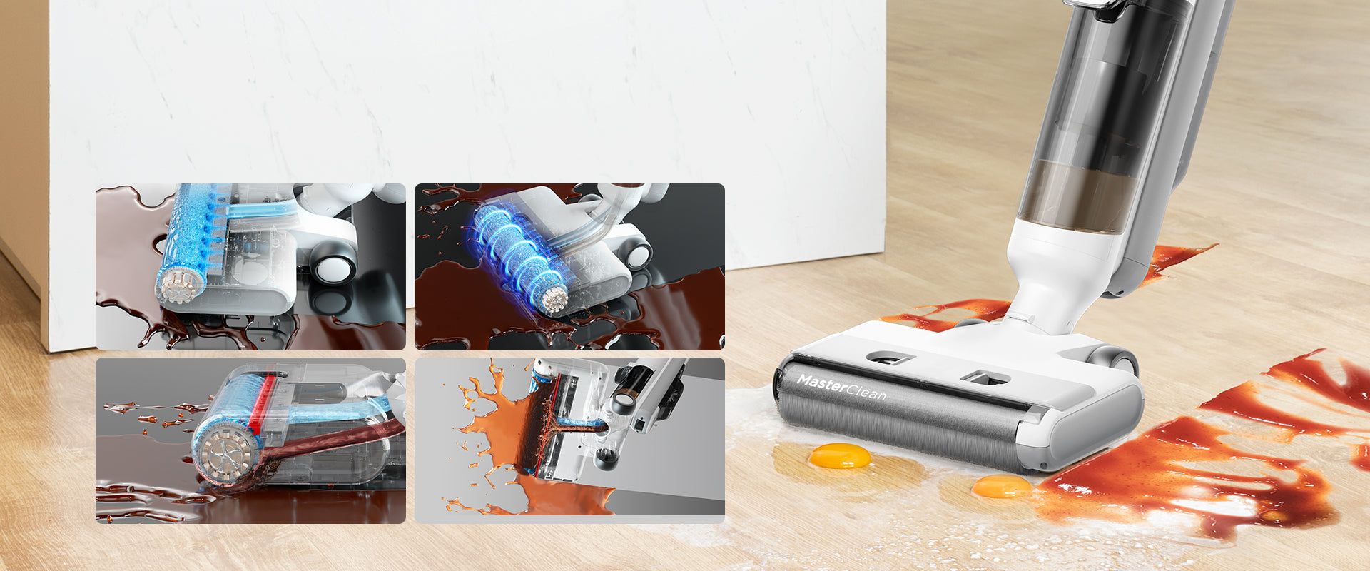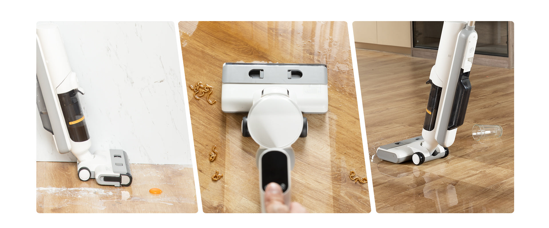 Der F10 Pro nutzt fortschrittliche, echte Süßwasser-Reinigungstechnologie. Mit seiner konstanten Drehzahl von 550 U/min und der starken Saugkraft entfernt er mühelos hartnäckige Flecken wie Soße und Öl von Hartböden.