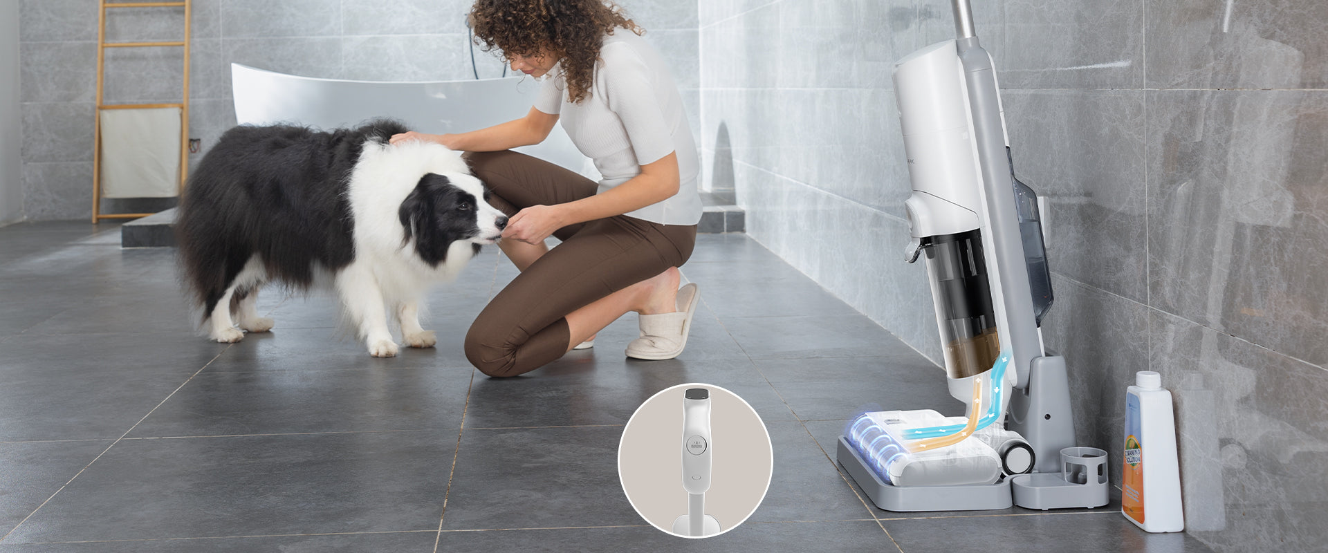 Ein einziger Knopfdruck genügt, um die Walzenbürste und das Innenrohr zu reinigen. Sowohl die Walze als auch das Rohr werden mit klarem Wasser gewaschen, sodass Sie alles mühelos sauber und geruchsfrei halten können.