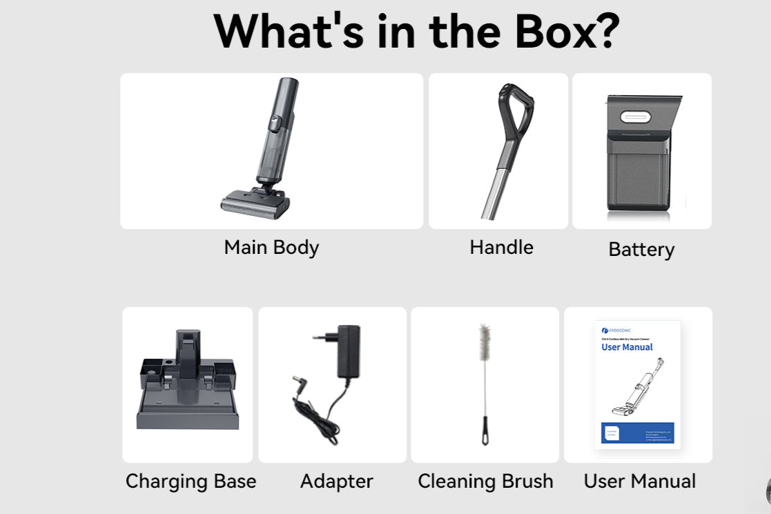 Der abnehmbare 6×2.500-mAh-Akku liefert bis zu 35 Minuten Laufzeit. Mit einem 1-Liter-Frischwassertank und einem 1-Liter-Schmutzwassertank kann er bis zu 120 ㎡ ohne Unterbrechung reinigen.