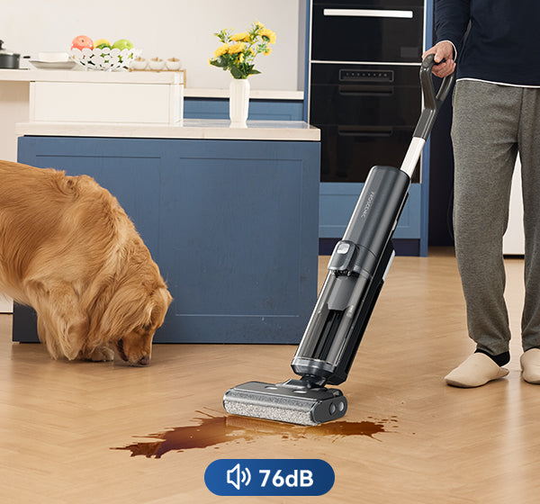 Der F20A verfügt über eine fortschrittliche Frischwasser-Reinigungstechnologie. Mit einer gleichmäßigen Walze mit 380 U/min und einer starken Saugkraft entfernt er mühelos hartnäckige Flecken wie Soße und Öl von Hartböden.