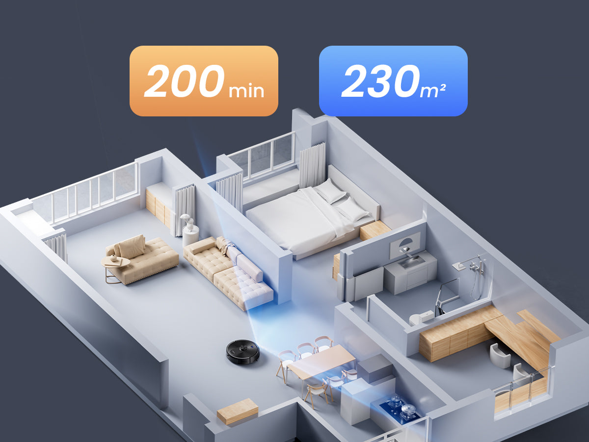 Cleans larger homes in one go, reducing interruptions and manual recharging.