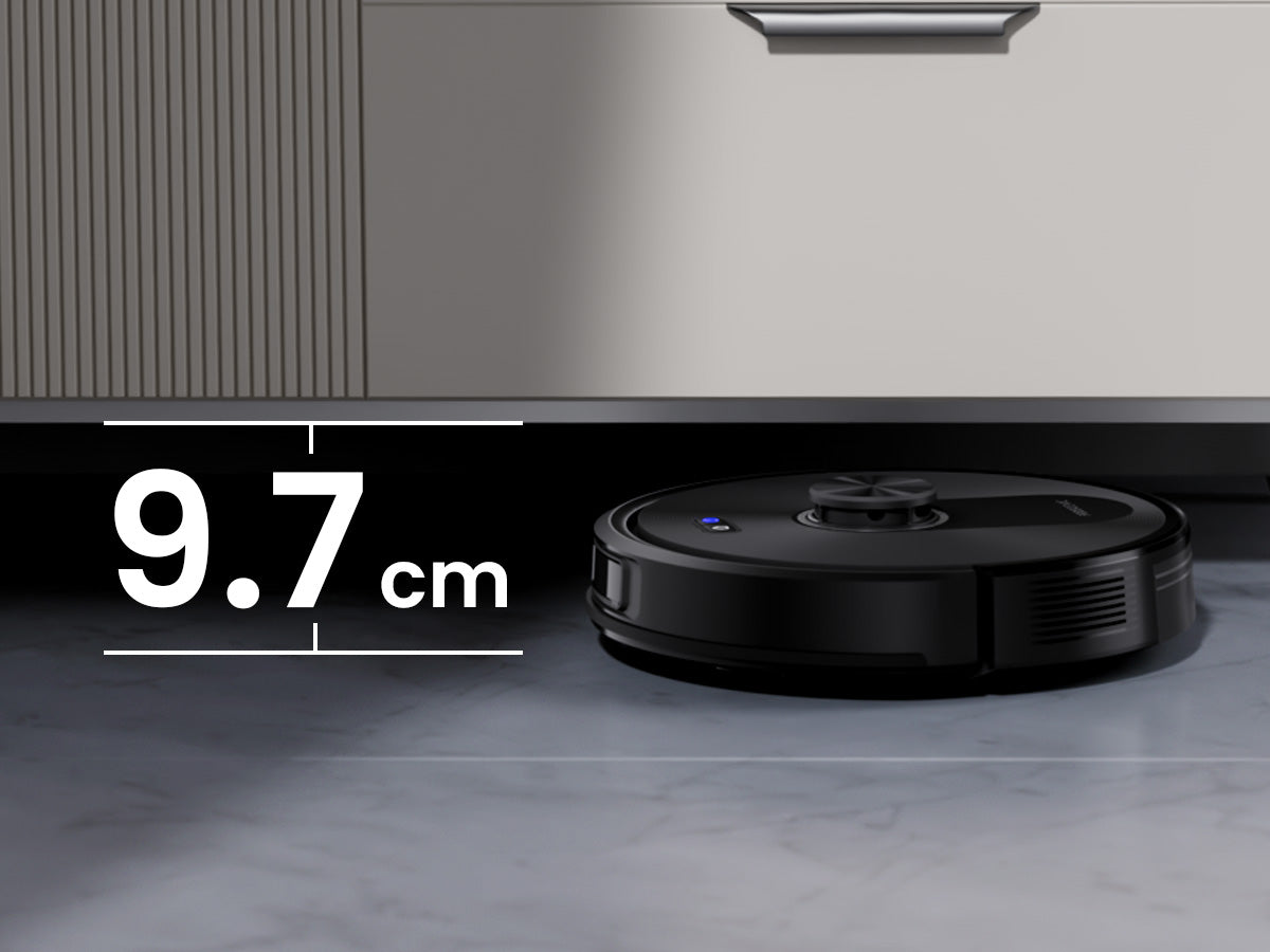 The Proscenic Q10’s slim 9.7 cm design allows it to reach under low sofas, beds, and cabinets, ensuring hidden dust and pet hair are cleaned effortlessly.
