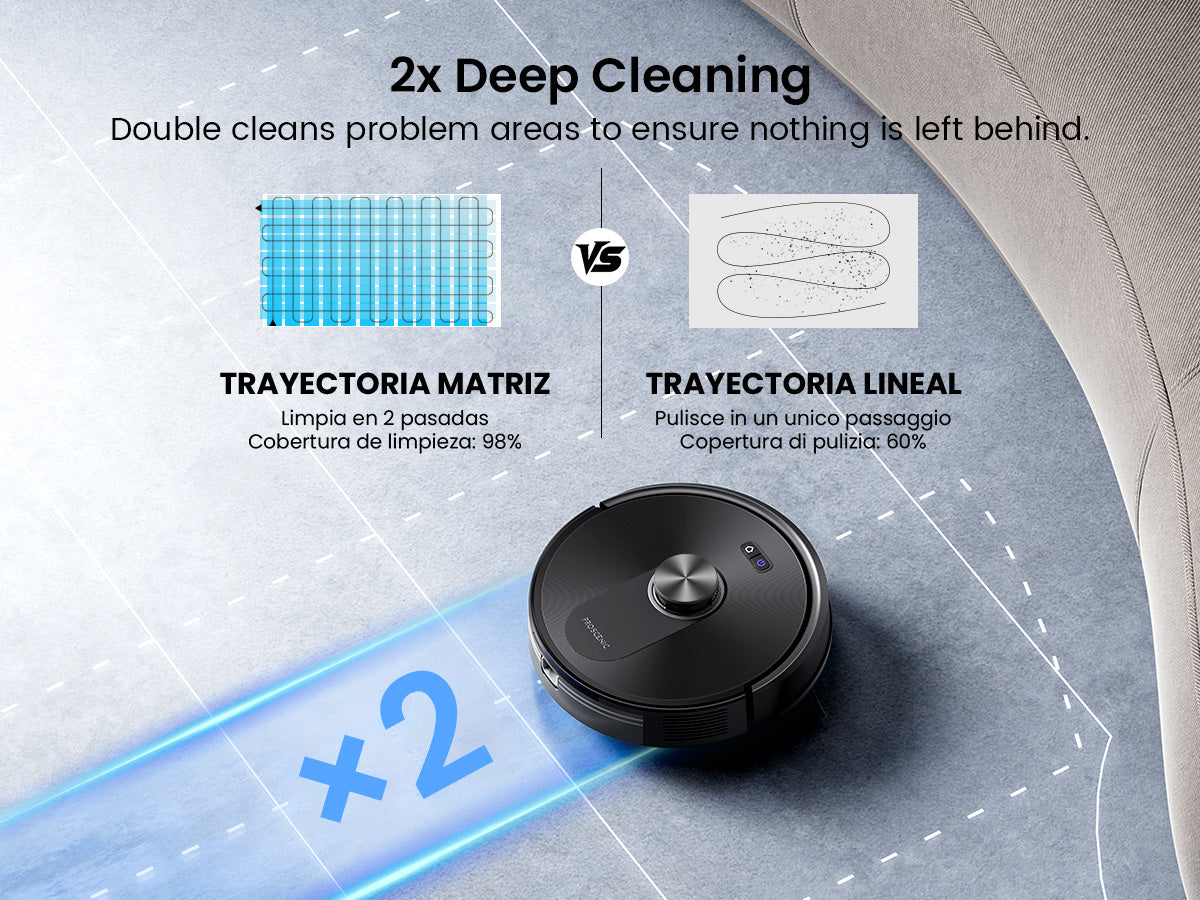Choose vacuuming, mopping, or both at once. The Q10 adapts to daily maintenance or deep cleaning—whatever your floor needs.