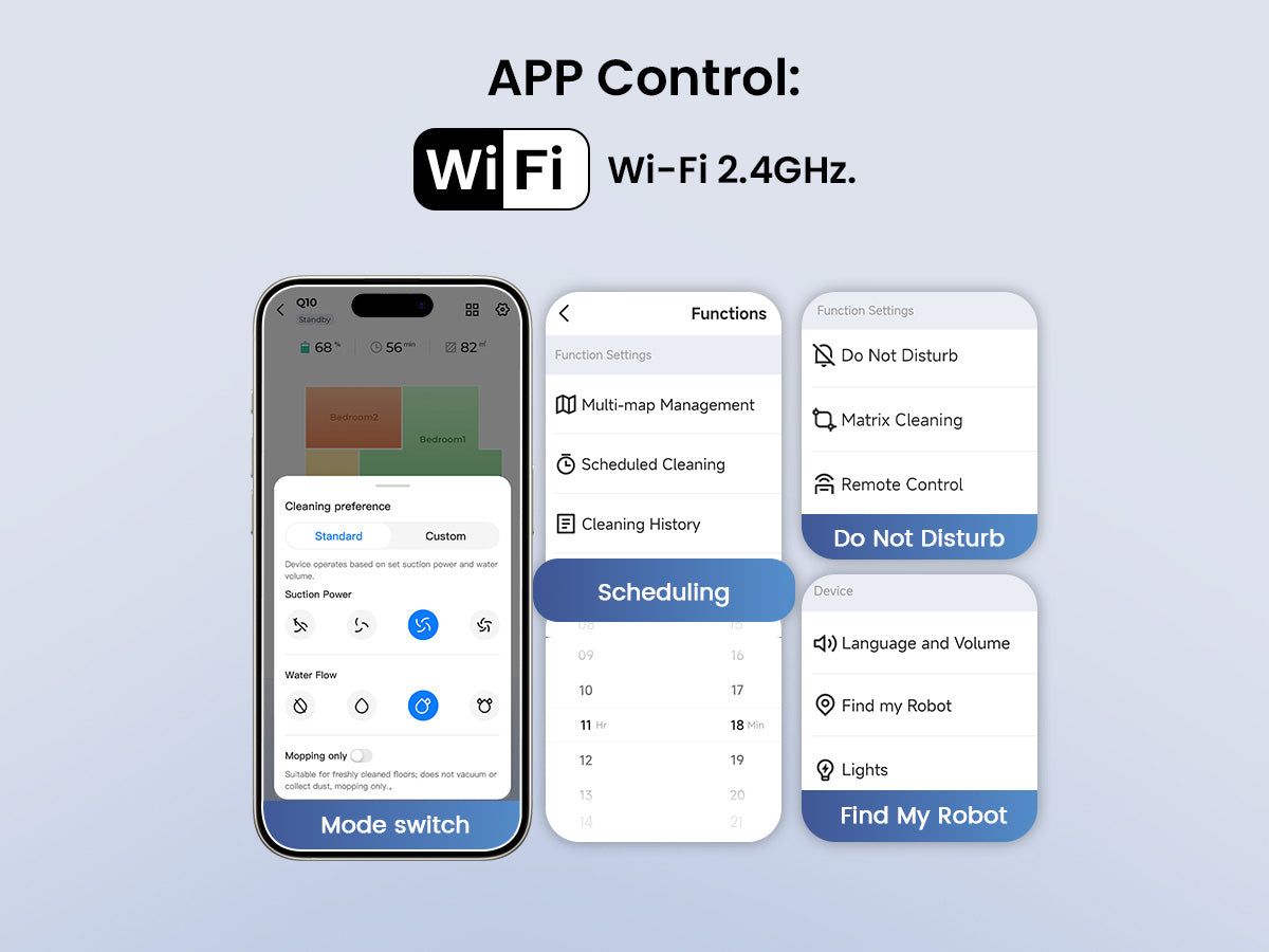 Adjust suction, set schedules, manage maps, and control zones anytime—cleaning your home becomes effortless.