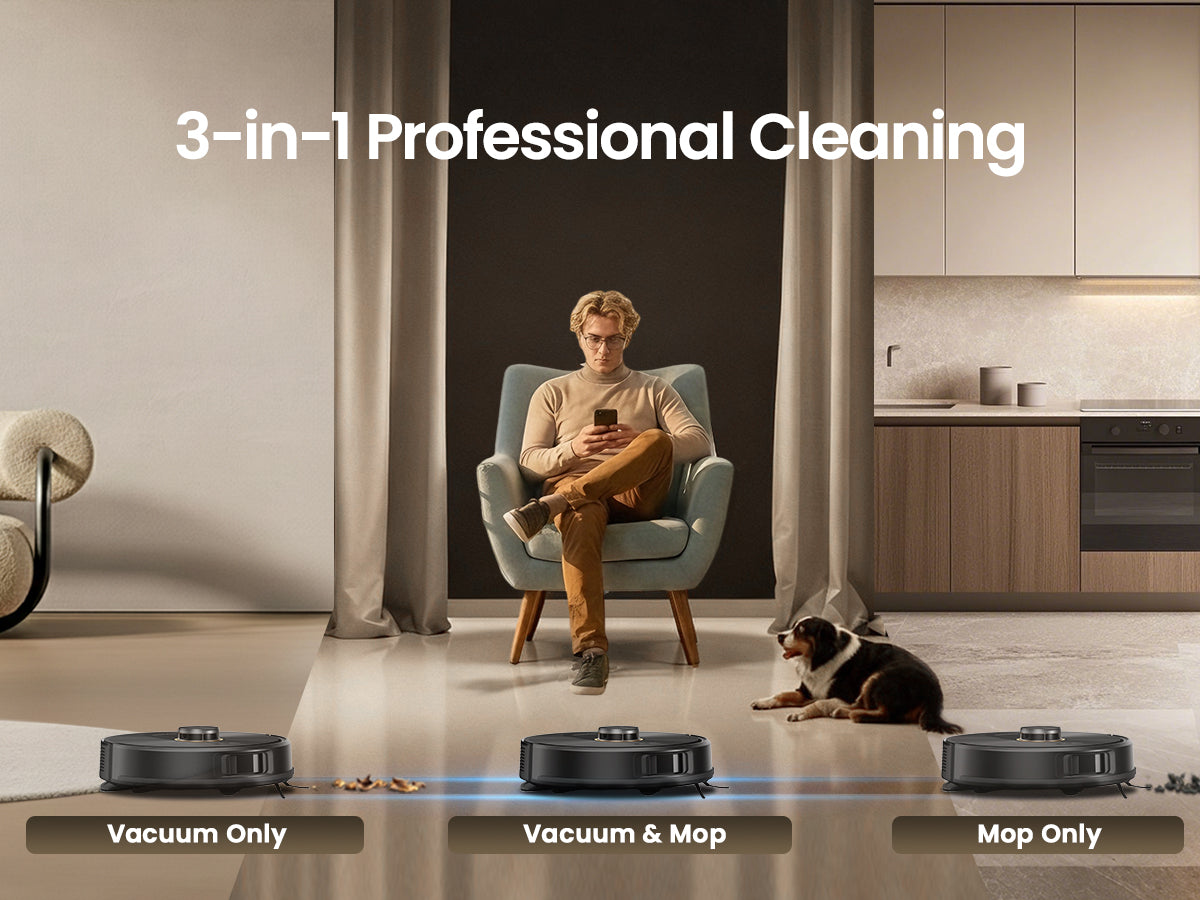Con navegación láser avanzada y detección de obstáculos en tiempo real, Proscenic Q20 Plus limpia eficientemente evitando muebles y obstáculos cotidianos.