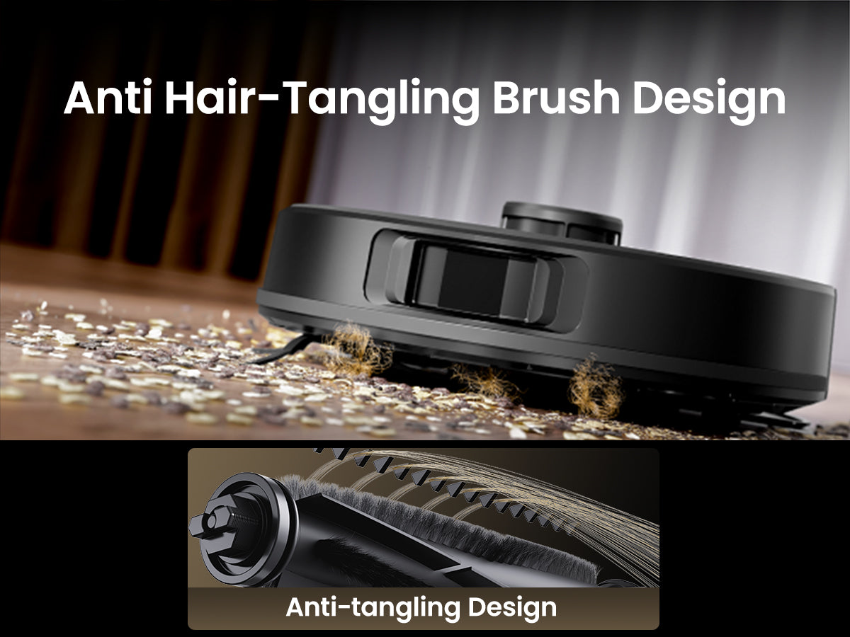 El diseño del cepillo giratorio antienredos ayuda Proscenic Q20 Plus reduce la envoltura del cabello, minimizando el mantenimiento manual y manteniendo un rendimiento constante.