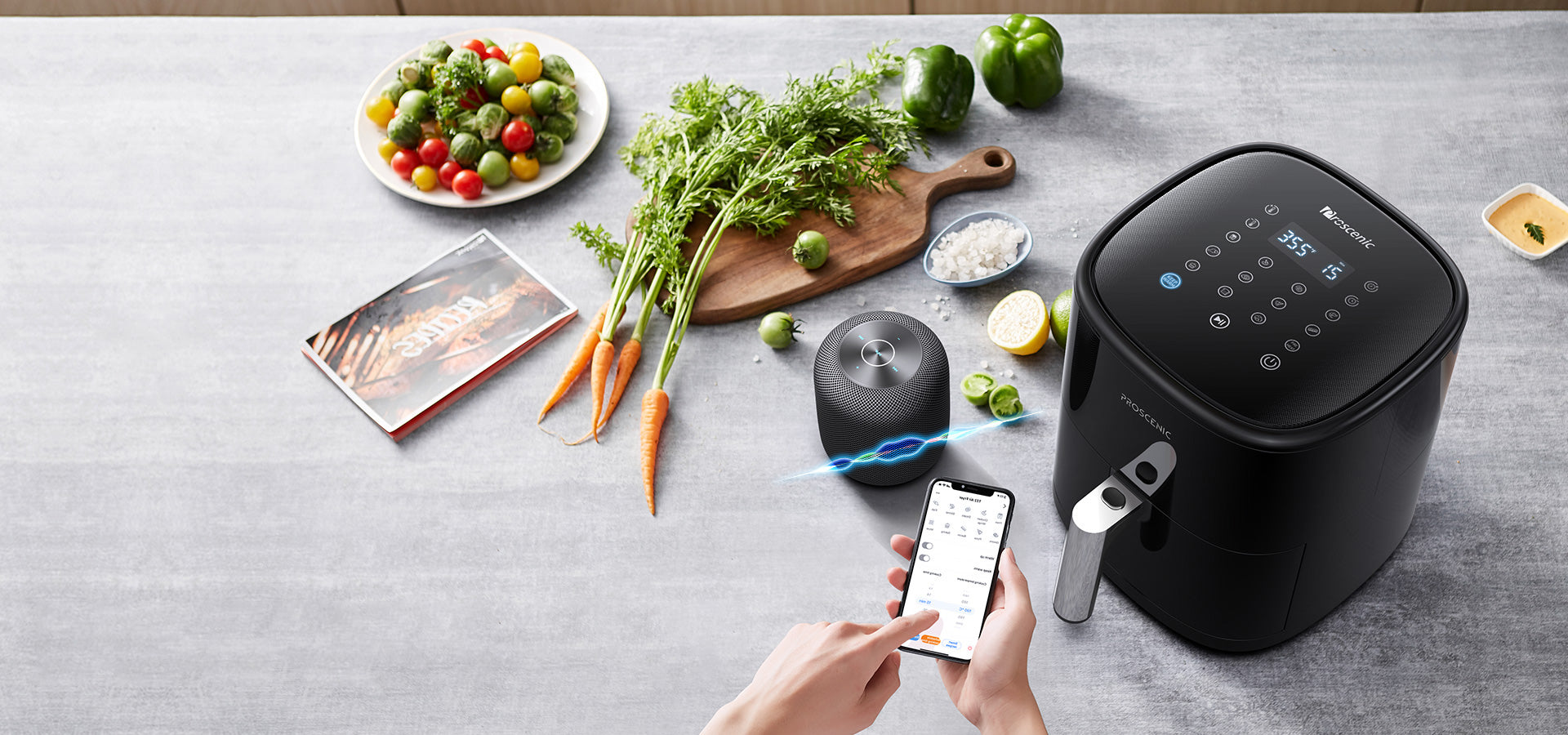 No importa tu nivel de habilidad, disfruta de más de 100 recetas detalladas paso a paso disponibles en Proscenic Aplicación y libro de recetas incluido.