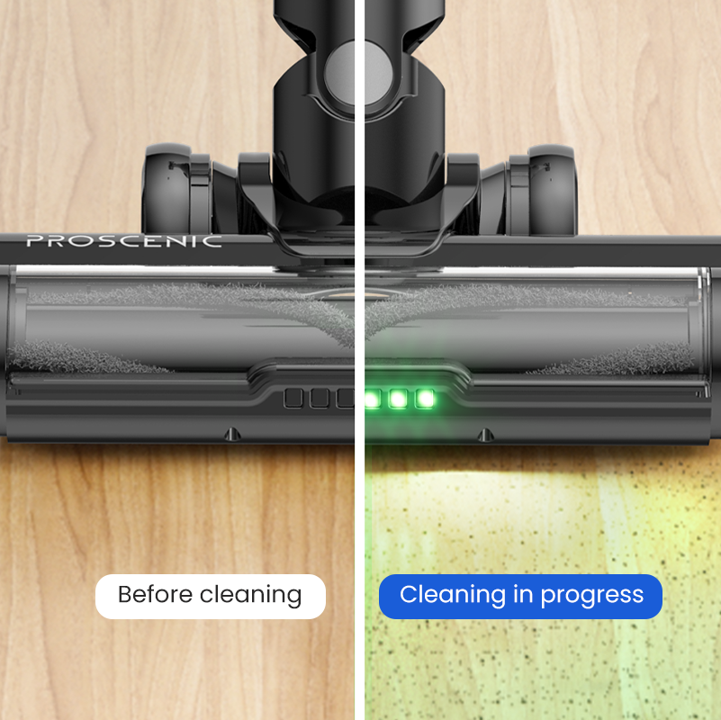 Upgraded green LED headlights effectively reveal tiny particles invisible to the naked eye, making it easier to spot and clean hidden dust.