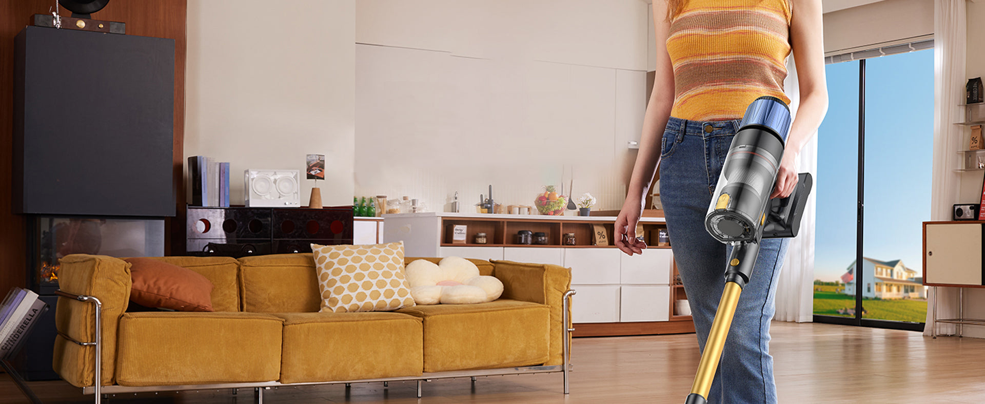 P15 cordless vacuum can stand upright on its own, allowing you to pause anytime during cleaning without leaning it against a wall.