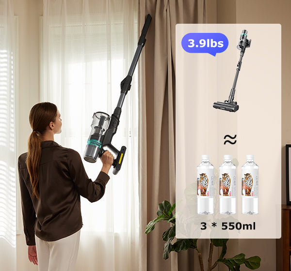 Main Body weighs at just 3.9 lbs/1.77 kg, perfect for above-floor cleaning and carrying up & down stairs!